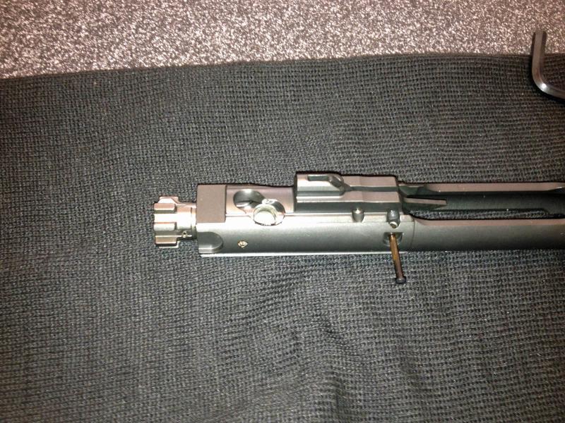Al contrario con otros ARs no hay que pelearse para meter el pasador que hace de retén de la aguja, aquí es un pasado normal y corriente que entra sin problemas si todo está correctamente colocado.