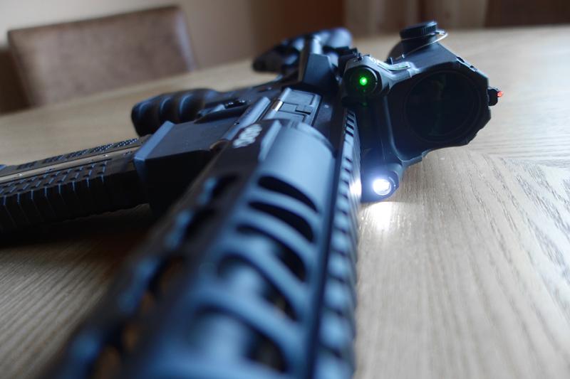 Para que queda al ras con ese raíl el cañón tendría que ser de 10,3", que es lo que llevan los MK18, pero en este bendito país esto es lo más cerca que nos dejan estar a un MK18