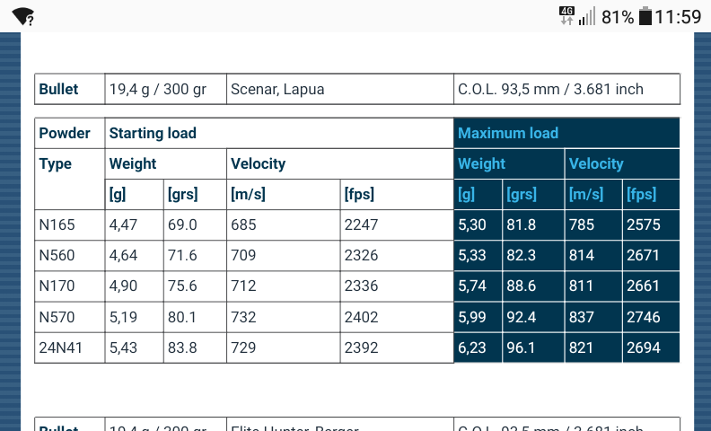 Para que te hagas una idea yo voy a tirar la scenar 250grains e intentaré sacarla a 880ms