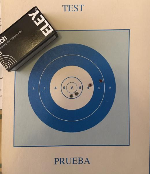 De momento a mi la que mejor me va es la sk match, estos dos blancos están hechos a 50 metros apoyado en la mochila y con un calcetín como apoyo trasero. Como visor llevo un Sightron 36X y le cambie el muelle del gatillo por uno de un bolígrafo y ha mejorado bastante.