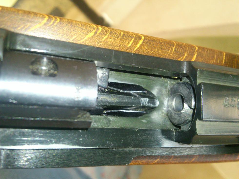 retomo este tema de hace años. pues viendo fotos, estoy convencido de porque se hinchan esas vainas. a esa recamara le han metido el dremel, y ahora la parte trasera de la vaina no tiene pared que la sujete y se hincha, en una de las fotos de la carabina, se ve bien, la mia no es así.