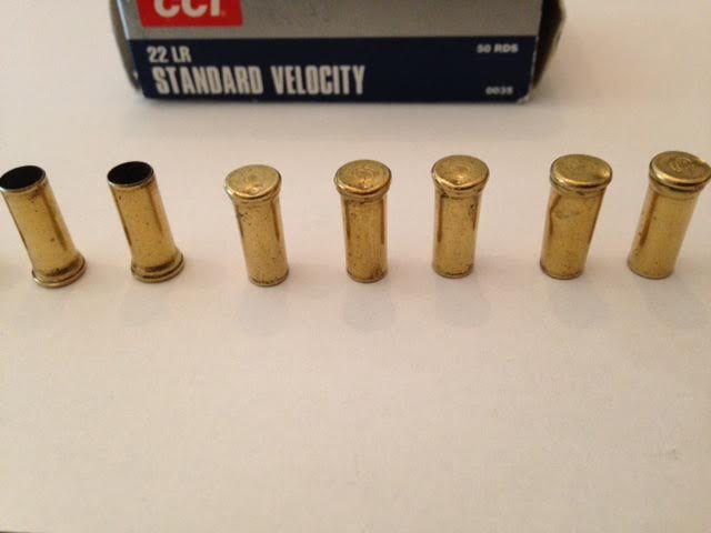 Pero como siempre hay un pero,vereis lo que pasa con las vainas.Tienen un hinchazón al lado del culote.Antes no me di cuenta pues era complicado hacerla funcionar,y si conseguia realizar dos o tres disparos consecutivos ya estaba bien,con lo que no prestaba atención a las vainas ya que mi preoucupación era otra.