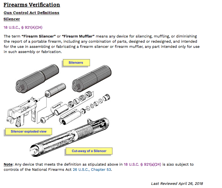 Silencer - The legal definition for a firearm suppression device (Silenciador -Definición legal de un suppressor)