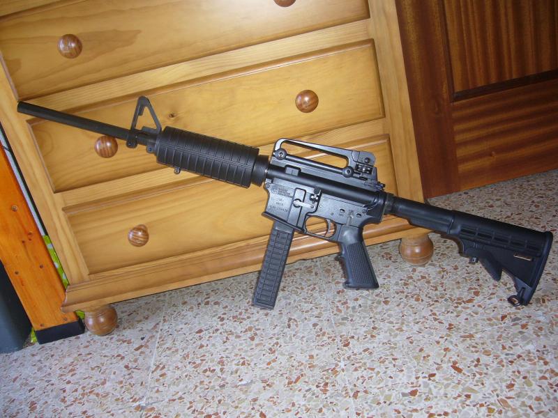 Según la pagina oficial de colt ,,(con el nuevo kit del 9 puesto ) éste modelo sería el moderno Colt ar-15 9mm mod 6450 cañon de 16" ,(Aunque de momento le falte la bocacha que está en proceso.