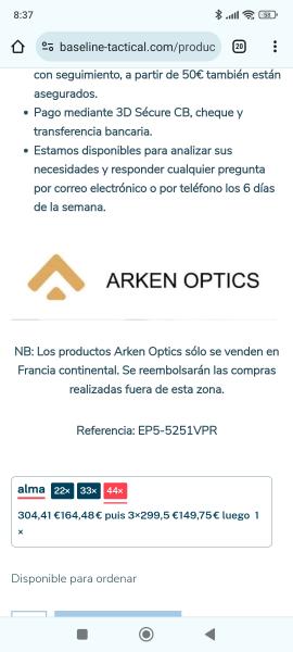 Estaba interesado en comprar una carabina de 22lr y buscando el resto de material , visor, anillas y d más les he preguntado si venden y envían a España los visores ARKEN EP5......pero si respuesta ha sido negativa. No venden ARKEN a España..... La verdad q me gusta mucho ese visor.