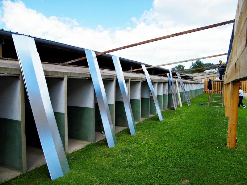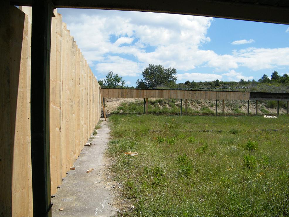 Otras fotos de la galeria de 50 metros que ya han empezado con ella también, y se puede ver como ya están los pilares del parabalas nuevo que tienen que poner y las maderas de un lateral y las del parabalas del final.