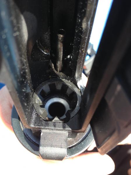 En ambos la Gas Key seguía mal fijada, en el caso del Astra bastante peor, además era como si le hubieran dado con un cincel y más fuerte por un lado y por la parte de arriba, y era rugosa. La del Schmeisser tampoco estaba bien fijada del todo, pero tenía el apretón mejor colocado. El Astra está a la derecha y el Schmeisser a la izquierda.