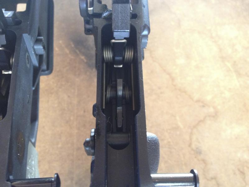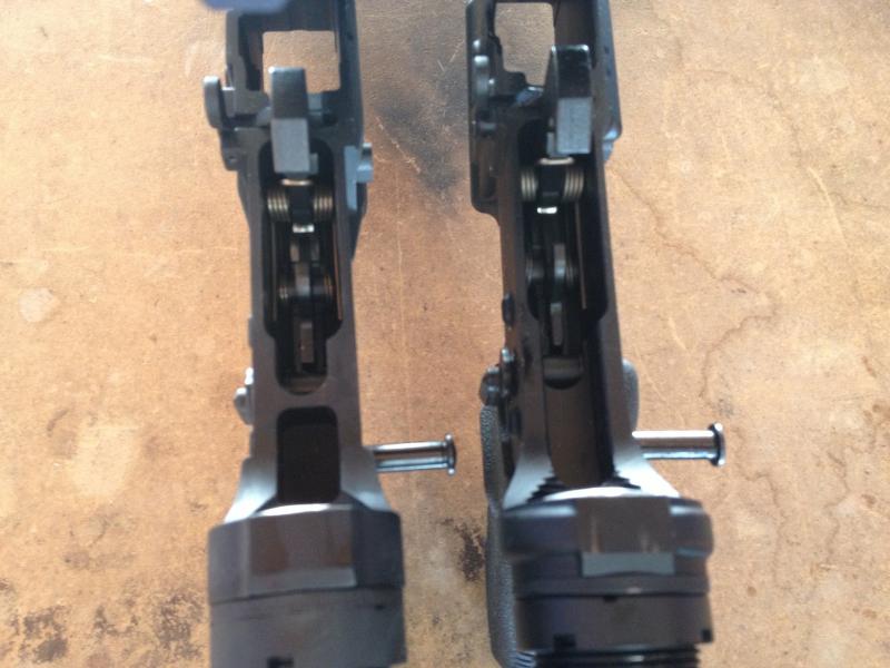 Y viendo ambos lowers desde arriba vimos algo curioso. El Astra tiene también un disparador muy duro, pero no sé si a alguien más le pasará, el reset del disparador es muy pequeño, por no decir casi nulo.