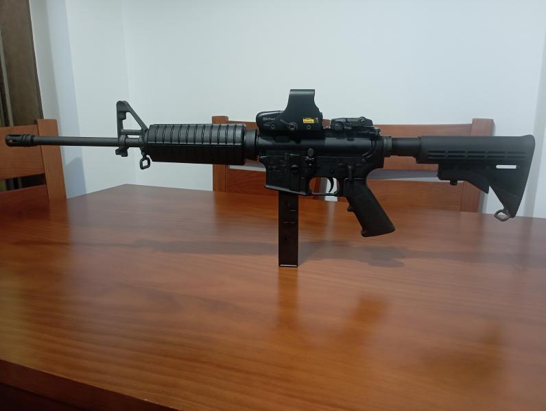 El AR 15 de 9mm no tiene toma de gases, funciones por inercia de masas.