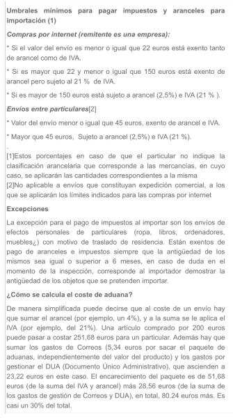 Toscano91 escribió:cuando lo paran en aduanas, qué habría que pagar? 21% de IVA, envío (otra vez y ademas creo que por UPS) y aranceles... pero... esos aranceles, de cuánto estaríamos hablando?