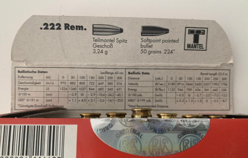 Y os paso foto de la munición que usa, al parecer sí que hay otras del tipo de "calidad" que le mecaniza, pero que con las de RWS está acostumbrado. Sí me ha confirmado que todas las que tira son de 50 grs.