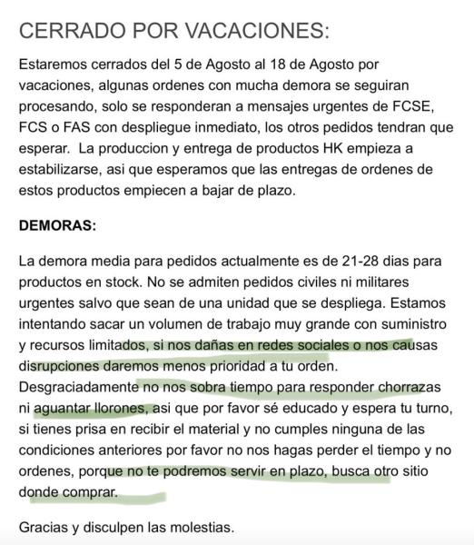 De momento han servido en plazos razonables. Tengo pedido el BCM con ellos también y es cierto que ya lleva unas semanas de demora, también les he pedido dos kit completos de iluminación para el DD y el BCM, todo cremoso Surefire vampire, Unity y ATPIAL, también van un poco retrasados.