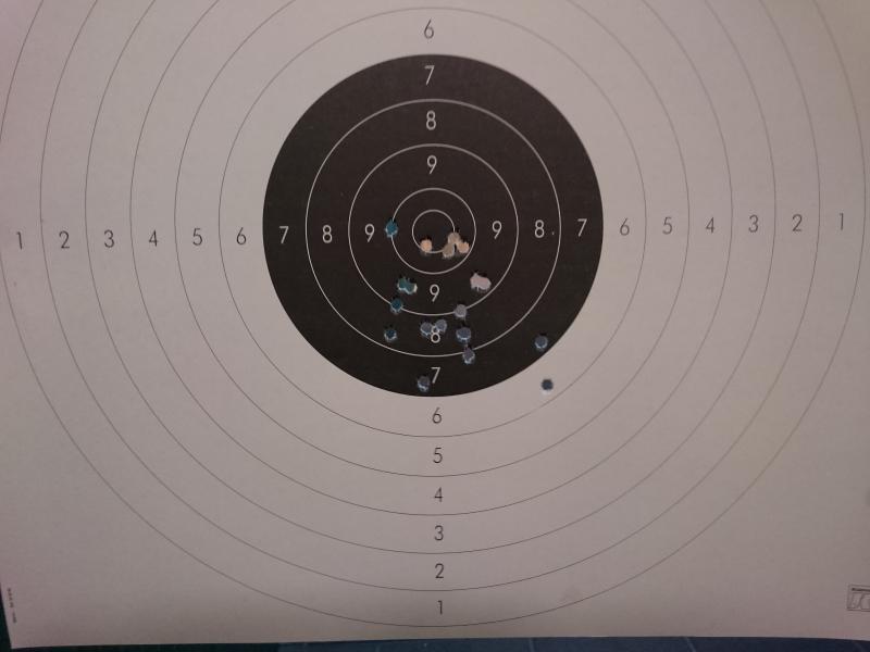 alguna foto mas, aquí se ve un poco la agrupación del bicho a 25 metros, obviamente mejorable, pero para ser la 1º vez que tiro con el y siendo de pie sin apoyos, no anda nada mal.