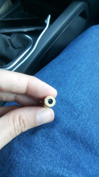 En cualquier caso un piston reventado puede acabar en cualquier lugar. Hablitualmente explusado, otras veces en varios lugares.... hacia abajo en el mecanismo del gatillo, o en el carro del cierre - con lo cual lo sale la ultima vaina o siquiera dispara (porque no cierra el cerrojo) o inclusive hasta en la misma orificio del tubo de gases el carro. Esto es "normal" que puede pasar...alguna vez en la vida, pero NO es o mas bien no deber ser habitual y de ser asi es municion defectuosa. Creo que Remington ahora usa otro proveedor para su 120gr blk.