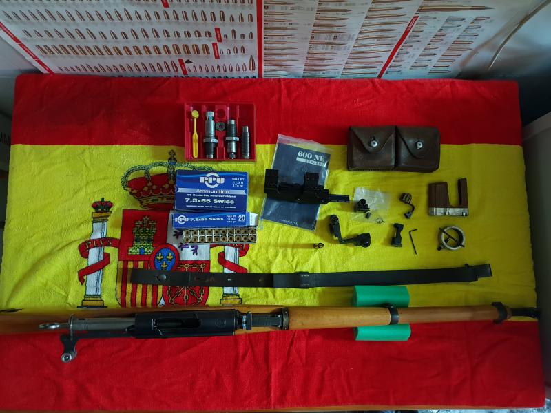 Se vende rifle Schmidt Rubin K31 en muy buen estado ,Cal. 7. 5X55 , fabricado en Swiss , 1956. Las piezas originales con números coincidentes,tiene una marca con la letra P la cual significa que el soldado que lo tuvo se lo quedo al terminar el servicio obligatorio.Precio lote 850€