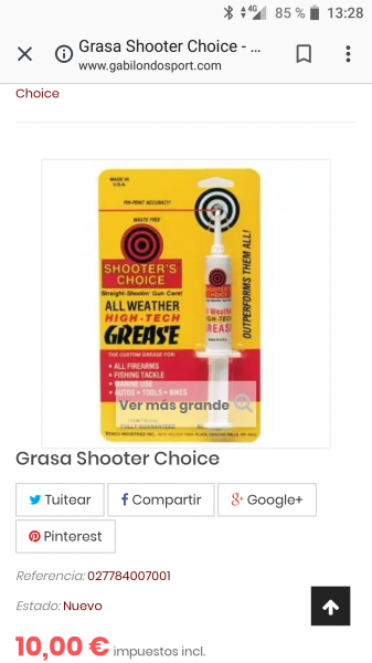 Desde hace unos años, he utilizado grasa Beretta o Blaser, para el cerrojo de mis rifles. Pero recientemente, hace 15 días, he comprado un rifle custom para F-class, con acción Barnard. La duda que me surge, es que en la página web de la casa Barnard, dice de usar grasa de moly para la rampa o "cámara" de alimentación del cerrojo y el enganche de la aguja percutora y otra grasa distinta para los tetones, tipo "super lube". El problema es que no encuentro en España grasa de moly en ninguna armería, y me pregunto si hay problema si sigo usando cualquier otra grasa para armas en todas las partes a lubricar en el cerrojo, tipo "Tetra Gun" o así.