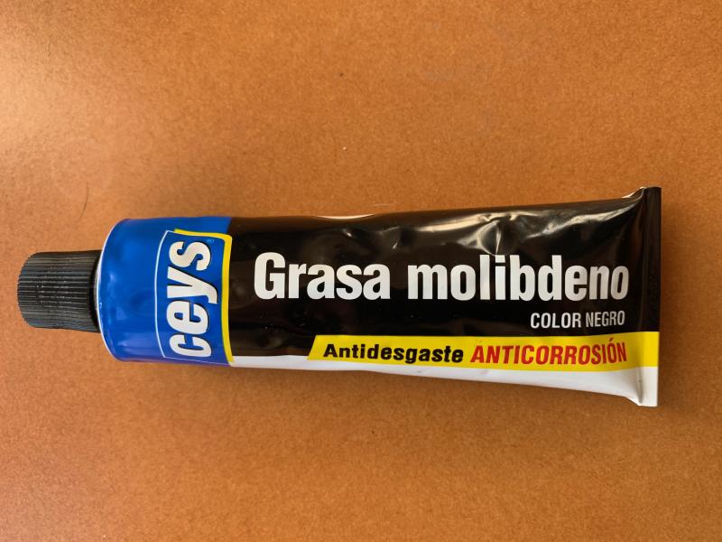 Hola compañero, si quieres grasa de Molycote vete a tu taller de confianza y dile que cuando cambien el guardapolvos del palier de un coche te guarden una de las ampollas que vienen en el kit de reparacion original , esa es grasa con bisulfuro de molibdeno , si tienes un poco de suerte te vendra la moderna que es blanca y no ensucia tanto como la negra , y es posible que ni te la cobren, espero que te valga la idea. Saludos y aroma de polvora.