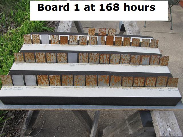 Los americanos, son muy dados a hacer todo tipo de pruebas, como coger un buen montón de sprays, rociarlos sobre unas chapas, y dajarlas unos meses a la intemperie, a ver que pasa............