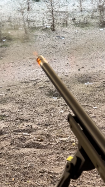 También probamos el freno de boca en Aluminio 7075 T6 y una pasada lo que reduce el retroceso y la agrupación que da aquí os dejo una foto de los gases saliendo una pasada.