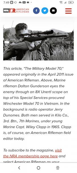 Eso lo dice en el encabezamiento del artículo sobre el Winchester 70 Van Orden que se usó en Vietnam y que se llama así: