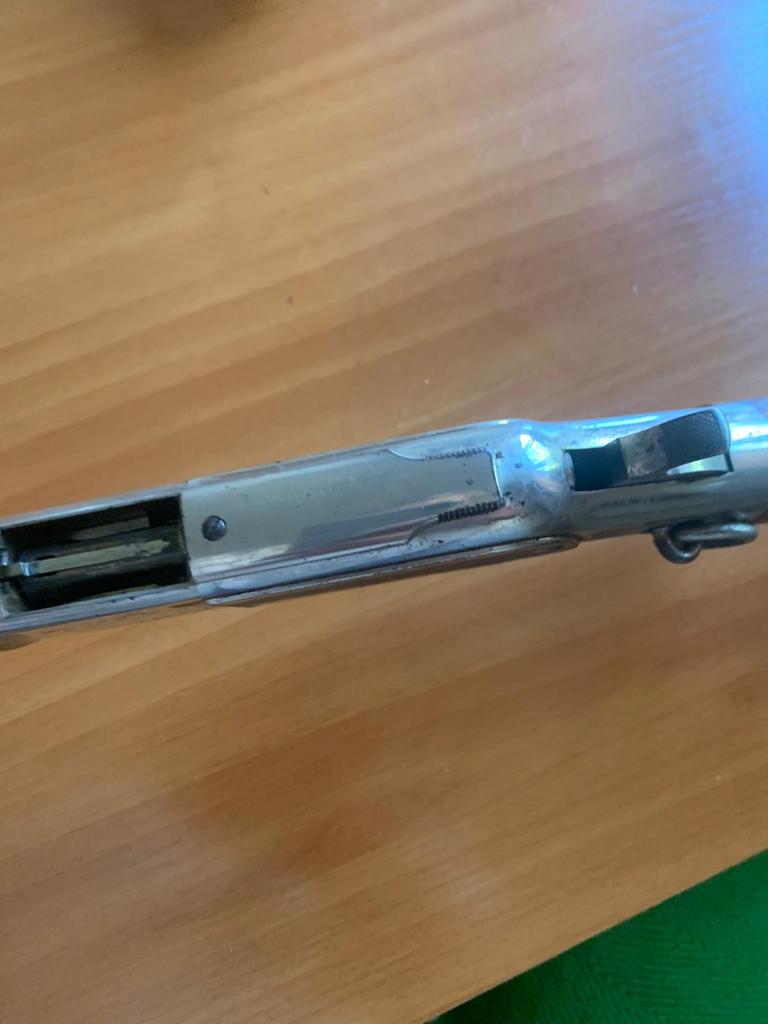 Y mire los punzones y leyendas,,,y aristas.Si no lijaron, y solo niquelaron o cromaron, y la estria esta decente, puede ser interesante proyecto de restauracion, pues se puese desniquelar por electroslisis.