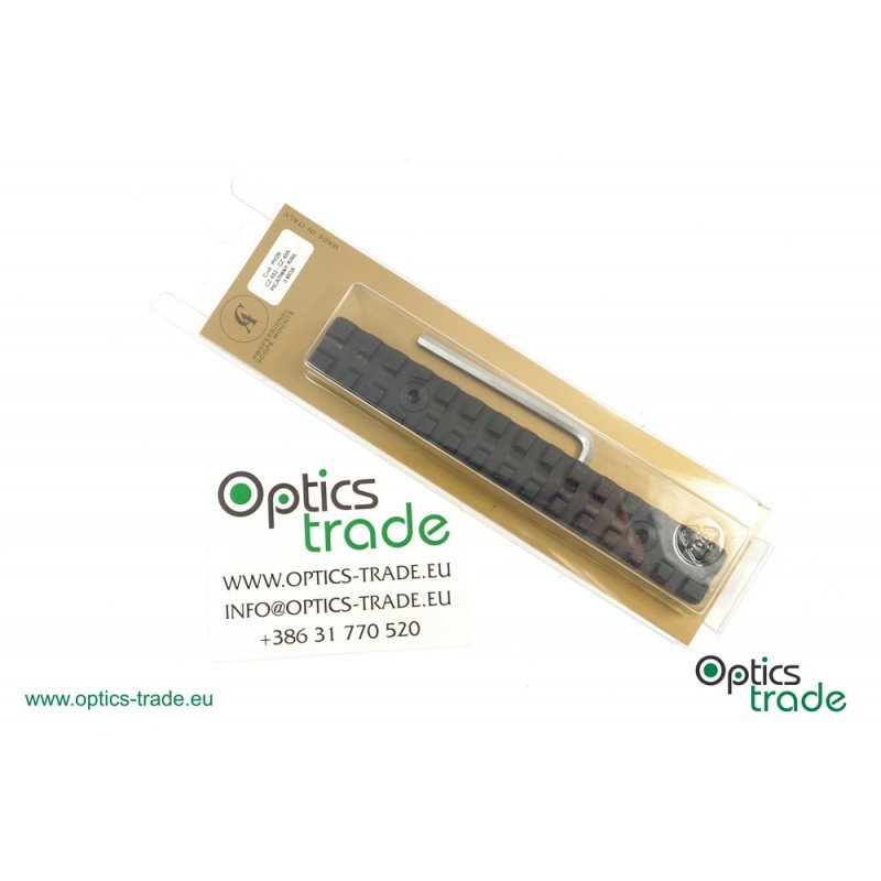 El rail picatinny CZ original de 20/25 MOAS (hay los dos), no llega a 80 € puesto en casa, y lo instala cualquiera sin el menor conocimiento, se desliza por el carril de 11 mm, y luego se aprietan ligeramente 4 tornillos, y listo....