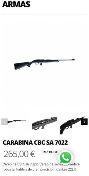 Very escribió:YUNK escribió:Very escribió:Buenos días y gracias por tus consejos. Pues, en principio, es para pasar el rato, para ir de vez en cuando de manera informal. Para empezar no me quiero gastar mucho y la quiero semi. La A22 que me indica el compañero ya está sobre 550€ y estéticamente la verdad no me gusta. Por debajo de ese precio no hay mucho, pero tanto la savage 64 fv, la marlin 795 o la CBC (la de la foto es la matech??) me gustan más. También he visto la marlin 60 (es en madera pero no está mal).