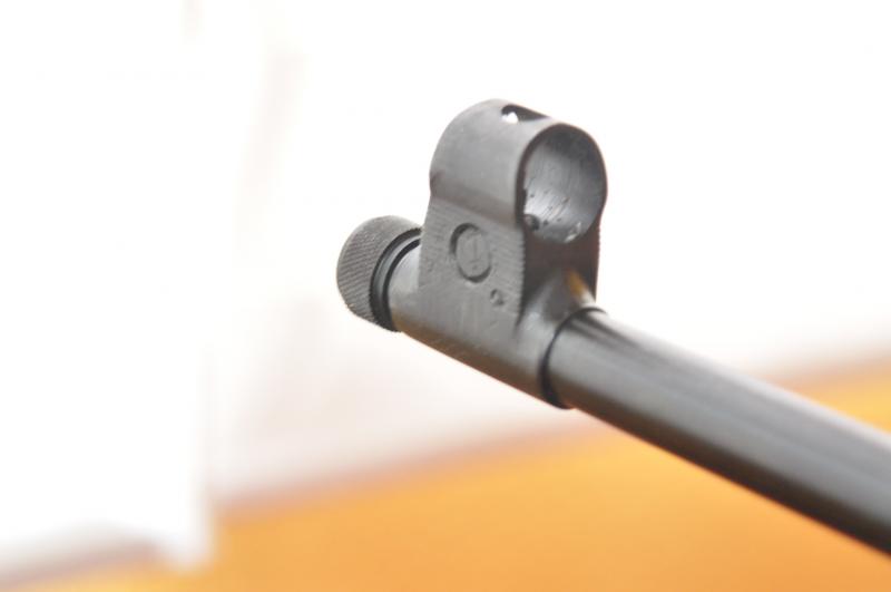 De origen viene con alza de librillo para 25/50/75/100 mts. y punto de mira con cubrpunto metalico, carril en cola de milano 11mm (3/8") para instalación de optica, boca del cañón con rosca y cubre rosca de origen .