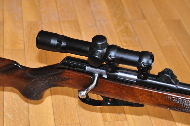 Le he acoplado un visor de 4 aumentos que compré por Ebay en Canada que me costó 25 euros, con unas anillas que tenia por ahi de estas del "baratillo".