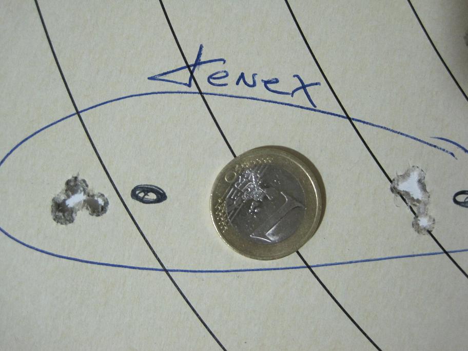 En cuanto a munición use Lapua Center-X (7,5€) y la SK Pistol Match (4,5€ la caja) las Eley Tenex o Lapua X-Act deben estar sobre los 20€ la caja, quien se lo pueda permitir que las use, pero viendo los ejemplos de "mate" en sus blancos no le veo la diferencia de precio en la munición y en el arma en cuestión.