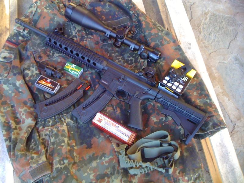 que bonita es la carbina... yo tengo una exacta en airsoft decorada con un supresor de airsoft de conos metalicos que esteticamente le queda muy bien... que pena que no sea legal poner supresores (silenciadores) a las carabinas del 22 por que este supresor de airsoft con conos metalicos le vale perfectamente a mp15-22 sin necesidad de quitar la bocacha... que cosas... lo malo esque en españa no se puede usar legalemente.