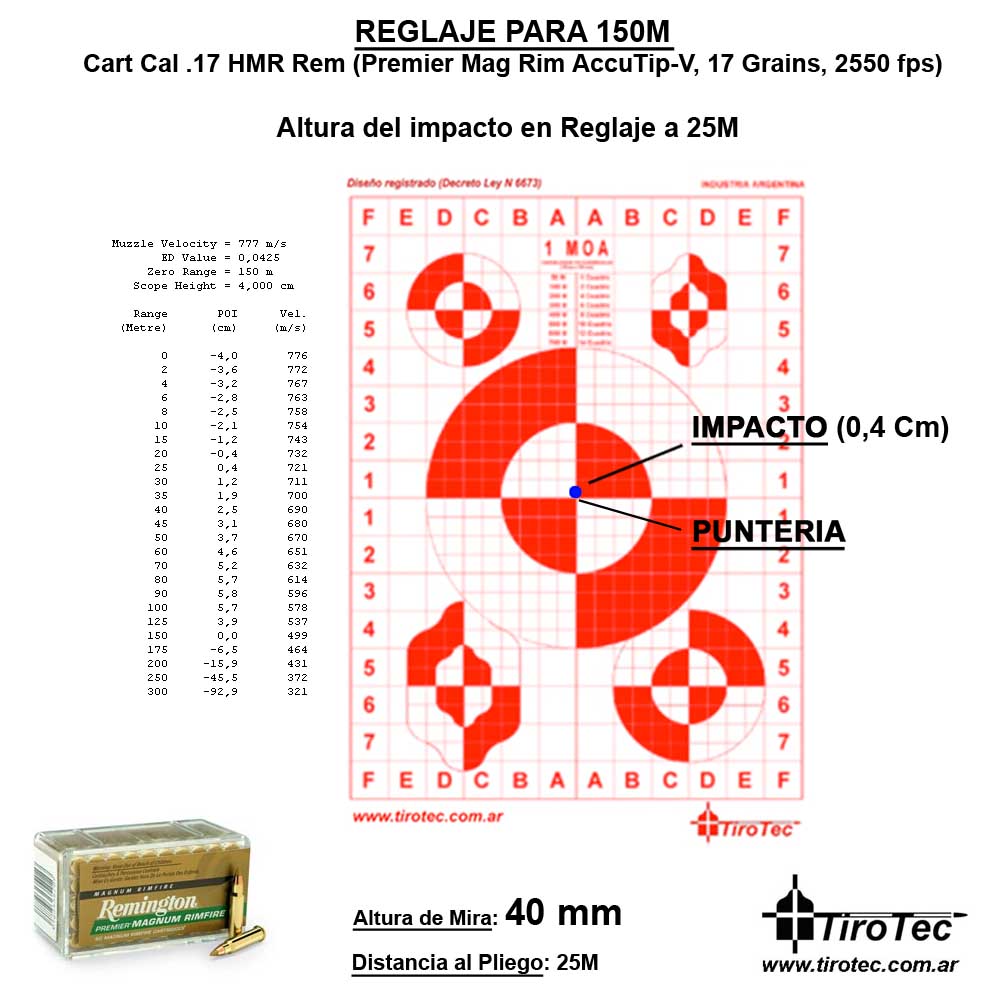 Os dejo unas fotos de mi rifle y el reglaje del calibre a 150M(Rem) .