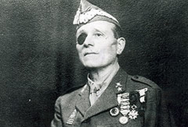 Millán Astray con el monóculo oscuro en vez del parche de tela.