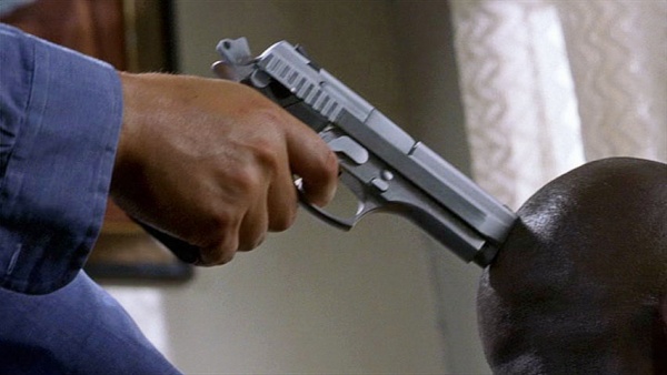 Eso es una PISTOLA y la peli es ésa en la que le apuntan a un negro en el coco