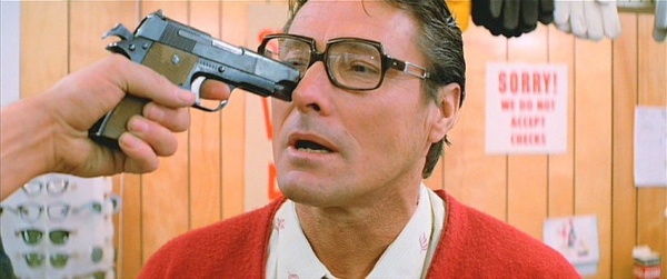 ) el traficante de armas y de otras cosas que "trabaja" a domicilio/hotel y que luego utiliza contra un afroamericano que intenta atracar el super donde va a comprar comida sana para ponerse cachas.