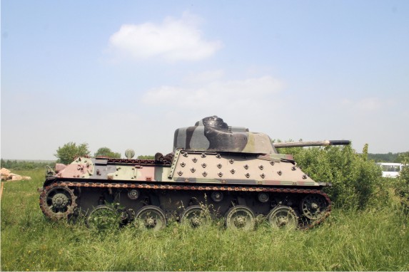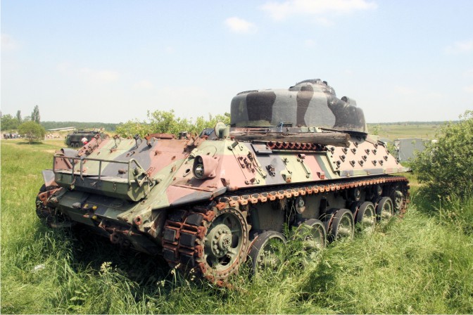 En este caso, a esta pobre barcaza se le ha montado una falsa torre de fibra de vidrio y un tronco de madera simulando el cañón, que haga parecer que es un T-72. Su designación oficial es la de Jaguar Harciele.