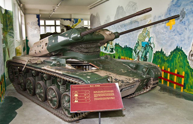 Ahora que tengo un rato, es un carro ligero de los 50, con cañón de 50 mm, de 30 mm o dos de 30 mm. Creo que fue una forma de tener preparado un carro sencillo para fabricar en masa, pero he leído ya información que se contradice, para variar