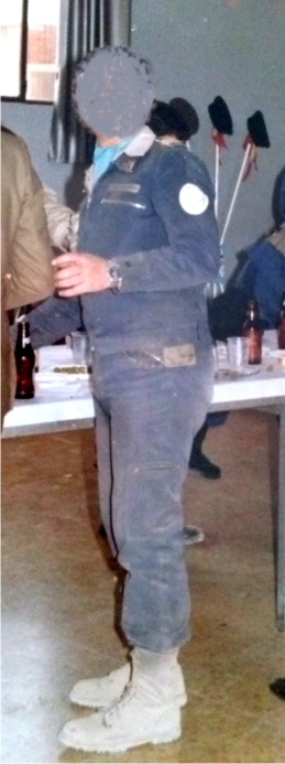Pongo dos fotos mías con el uniforme de "sastre" que utilizábamos algunos mandos. Como veréis la limpieza no era muy "profunda", porque las dos están echas a la vuelta de unas maniobras y coincidió con un vinillo de despedida.