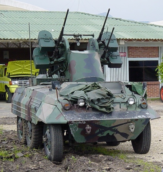 y finalmente el M8 Greyhound Armored Car Escarabajo con montaje M55 de 4 ametralladoras M2 Browning del .50 cal (Colombia)