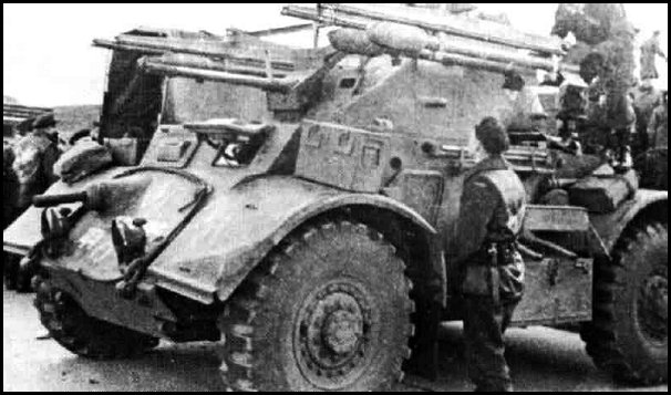 T17 E2 Staghound (Mk III) L.Rocket - lanza cohetes variante USA y usada tambien por los ingleses con dos contenedores a 4 cohetes de 75 mm