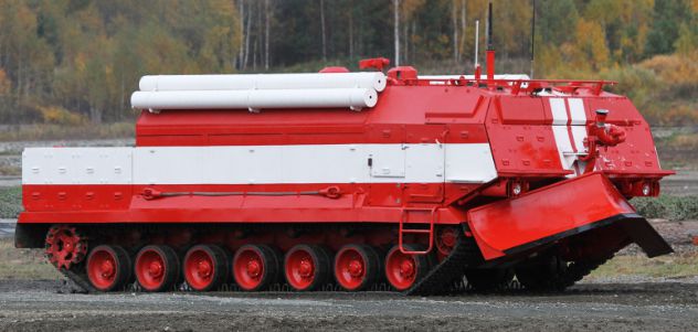 9.- T-80 SPM. Colosal vehículo montado sobre el chasis del carro T-80 con sistemas contra incendios similares a los Jumbo alemanes o los GPM-54 ucranianos.