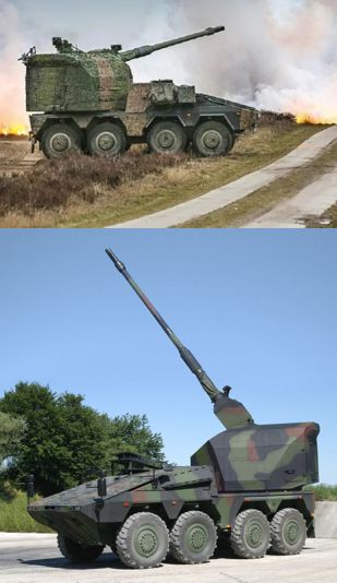 En este caso es una versión ATP de la Krauss-Maffei Wegmann (KMW) de 155 nada menos que con la torre del PzH 2000 sobre el chasis de un GTK 8x8 Boxer con un cañón 155 mm/L52 del PzH 2000 que se designa RCH 155, con una velocidad de disparo de 6-8 disparos por minuto y un alcance de 54 km, y que como podéis ver en la imagen, la torre es otro módulo de quita y pon.