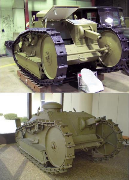 Antes cuando os comente que era una copia del RT-17 frances no me referia a la dstribución puesto que el RT-17 lleva una torre giratoria y el Ford no, me referia al tren de rodaje con la gran rueda motriz delantera y la tensora atras.