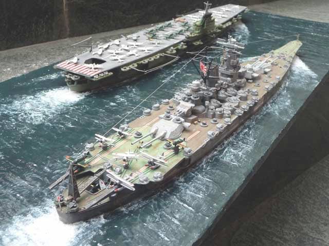 Bonitas maquetas de barcos esta la tenía guardada: portaaviones Shinano y acorazado Yamato en un diorama.