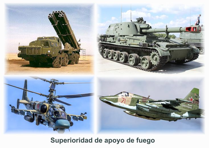 Vamos a ver, cuando un ejército moderno se enfrenta a otro, ambos tienen, que tener unas condiciones importantes para conseguir una victoria, a saber, una buena logística y medios de transporte suficientes, una buena cobertura aérea, una potencia de fuego mediante una buena cantidad y concentración de medios artilleros y una potente fuerza de medios terrestres con elementos acorazados, e infantería acorazada y mecanizada y elementos de apoyo, como zapadores-ingenieros, transmisiones, etc., y sobre todo un mando coordinado.