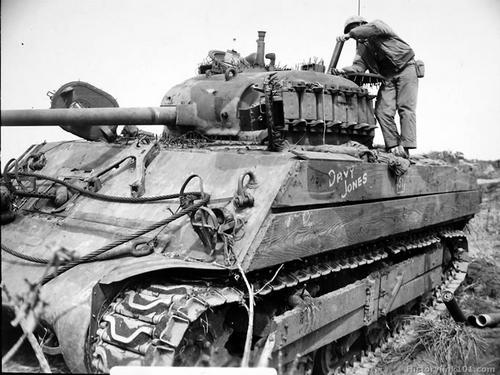 tambien hubo algunos a los que se le soldaron pinchos, para evitar que los nipones se subiesen en combate (vamos, como un erizo)...en otros se soldaron rejillas en todas las aberturas (periscopios sobre todo) para evitar que les metiesen granadas por ellos, y casi todos llevaron sacos terreros sobre el techo de barcaza, mas que en el frontal de la misma...para los ataques desde arriba...