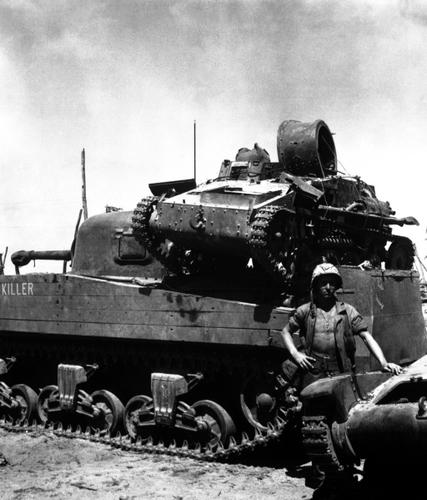 Principios el 44 y los sherman seguían siendo carros con cañón "pobre". Hasta que no llegan los nuevos Sherman (el A4) con los 76 mm era penoso... eso si, tenian tantos y era tan fiable que ya podian tener los alemanes 4 Panzer 4 y 3 Panthers en un pueblecito... que frente a 30 Shermans...
