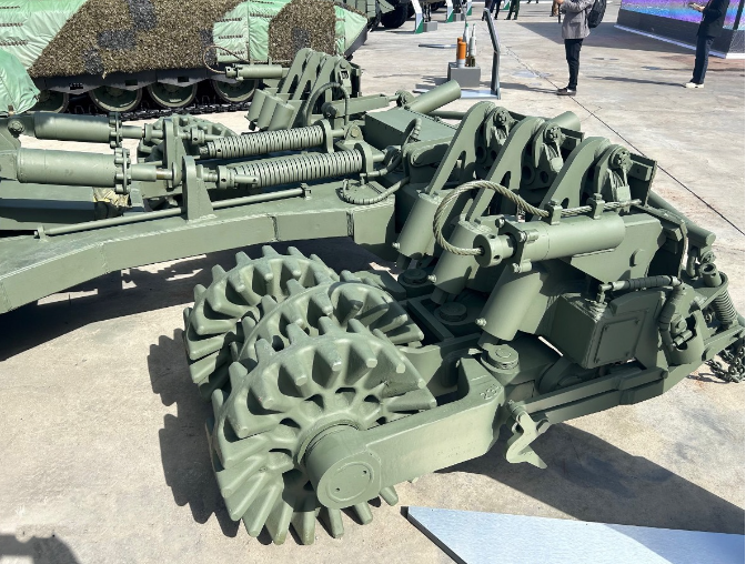 Supongo que ya tendréis noticias de el, pero aquí por si acaso os pongo estas imágenes del nuevo carro de combate ruso T90M para zapadores, el T90 Proxy con el sistema de rodillos AP Arena M para campos de minas. Que por cierto ya salen de fabrica con el paraguas de rejilla anti drones.