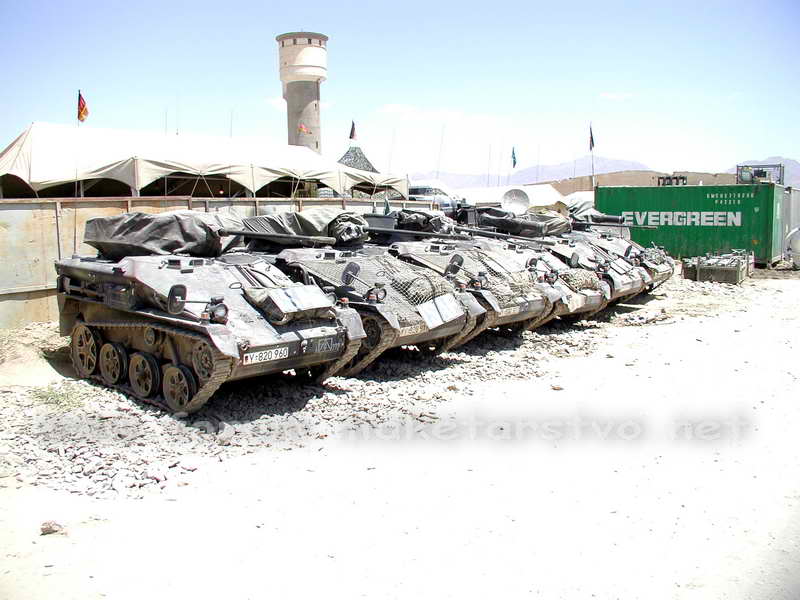 Amigo IVAN, si te fijas bien esa foto es ya antigua pues mira el modelo de fusil que llevan los fusileros los viejos G3. En esa época no existía la versión del Wiesel APC que puede llevar una escuadra de 4 fusileros, por lo que deduzco que esos fusileros han llegado con el CH-53 que sobrevuela la zona.