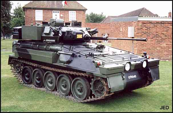 • FV107 Scimitar, vehículo blindado de reconocimiento, dotado de un cañón Rarden L21 de 30 mm